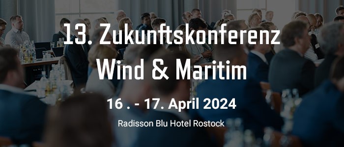 Wir laden Sie herzlich zur 13. Zukunftskonferenz Wind & Maritim 2024 ein und freuen uns auf Sie hier in Rostock.