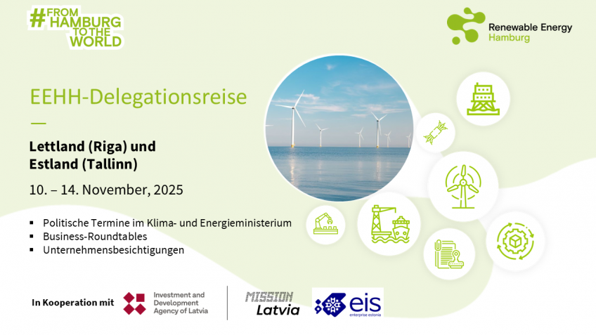 Am 24. September 2025 reist eine Unternehmensdelegation unter Leitung des lettischen Wirtschaftsministers Viktors Valainis nach Hamburg. In Zusammenarbeit mit der lettischen Botschaft planen wir einen German Latvian Renewables Roundtable, um einen ersten Kontaktpunkt zu ermöglichen und auf den Gegenbesuch im Herbst vorzubereiten.