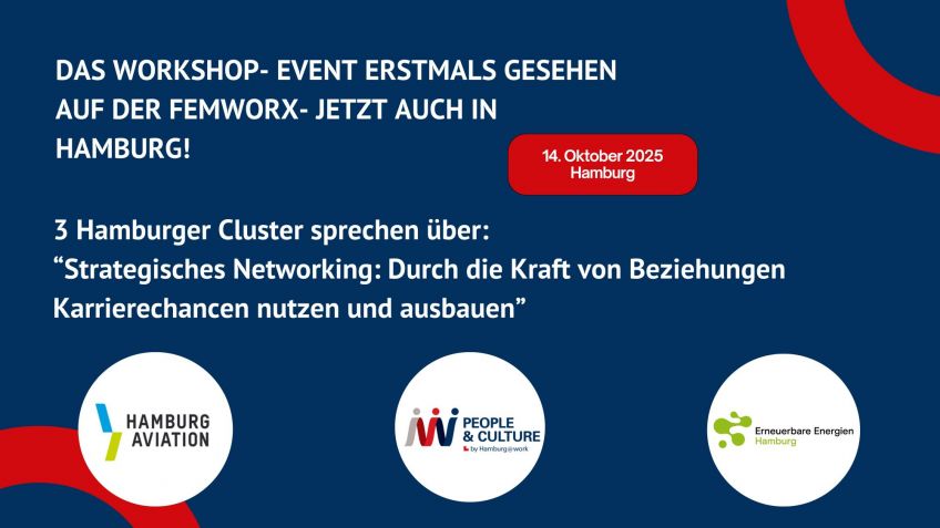 Das Event wird von den drei Clustern Hamburg@work, Hamburg Aviation und Erneuerbare Energien Hamburg gemeinsam angeboten – durch dieses gemeinsame Wirken und Gestalten entsteht für die Teilnehmerinnen ein wertvoller Mehrwert.
