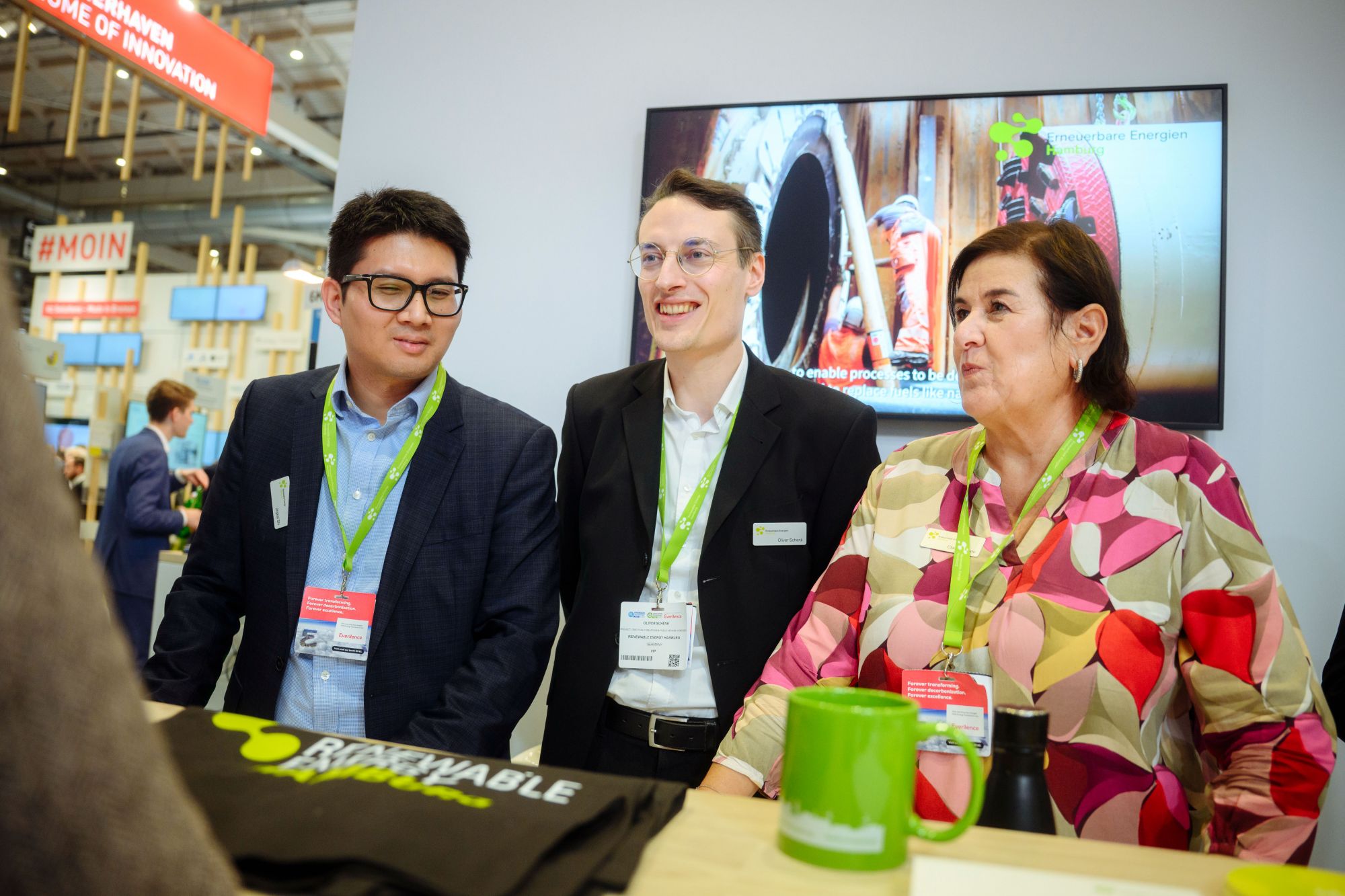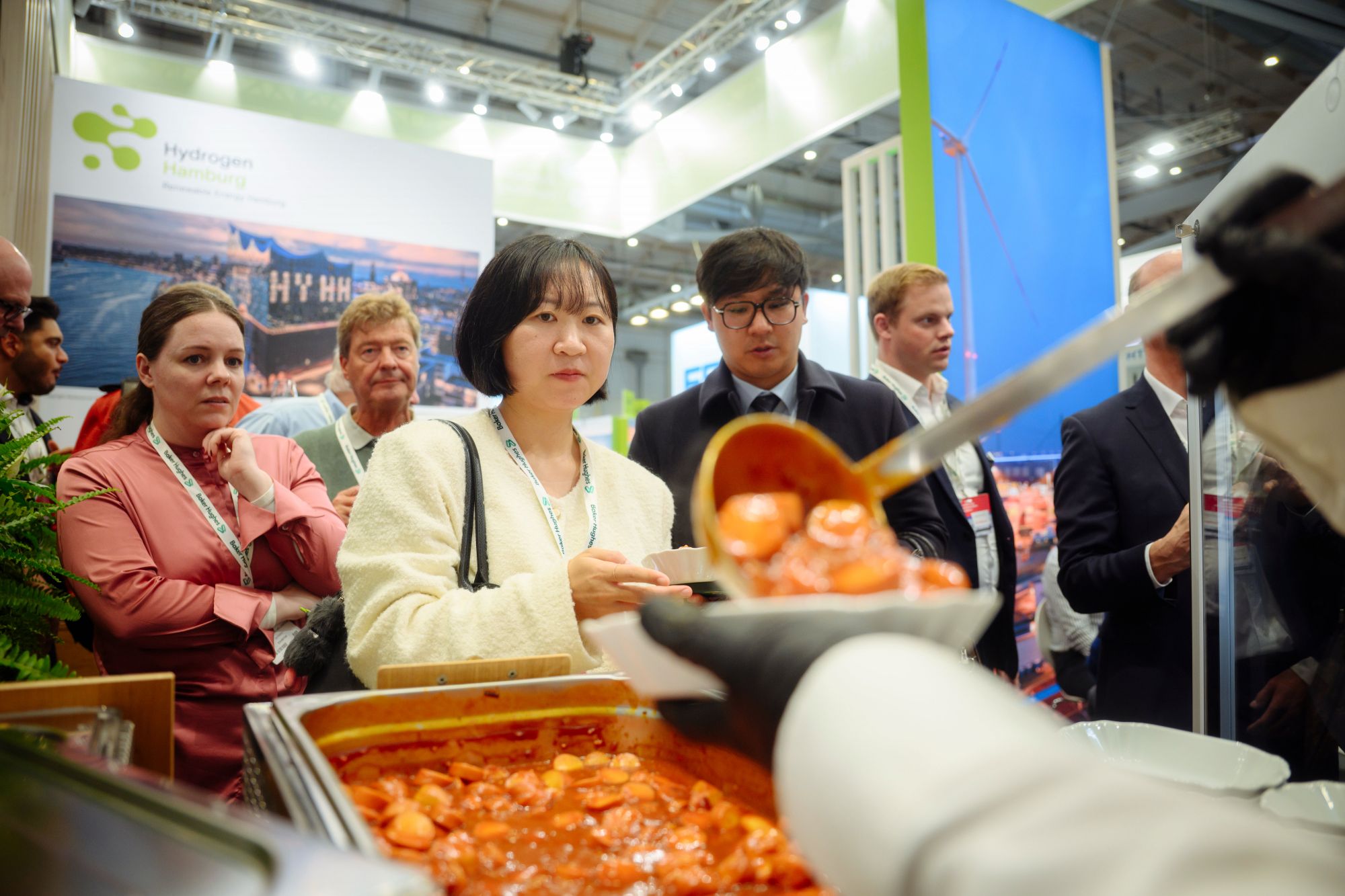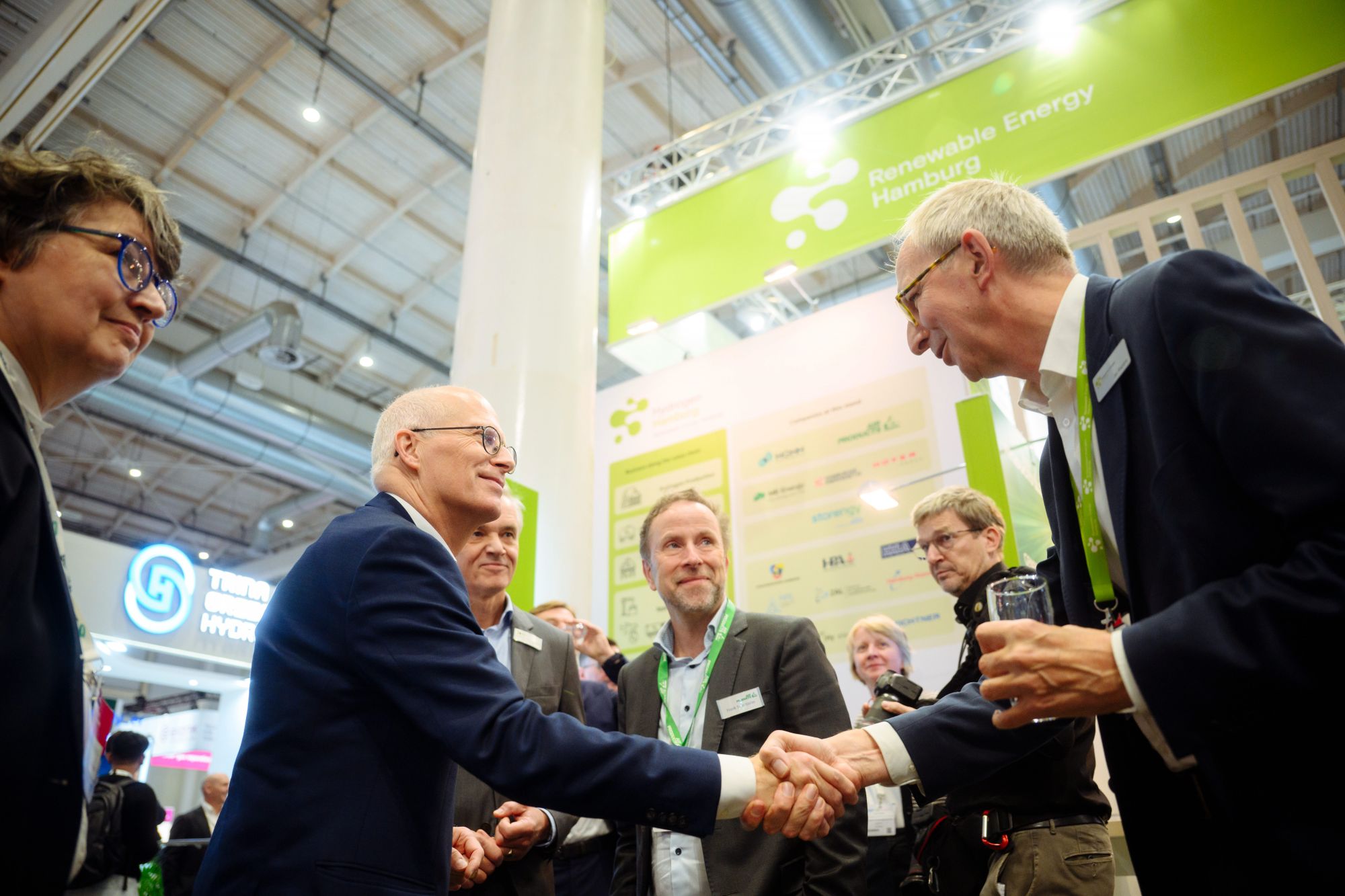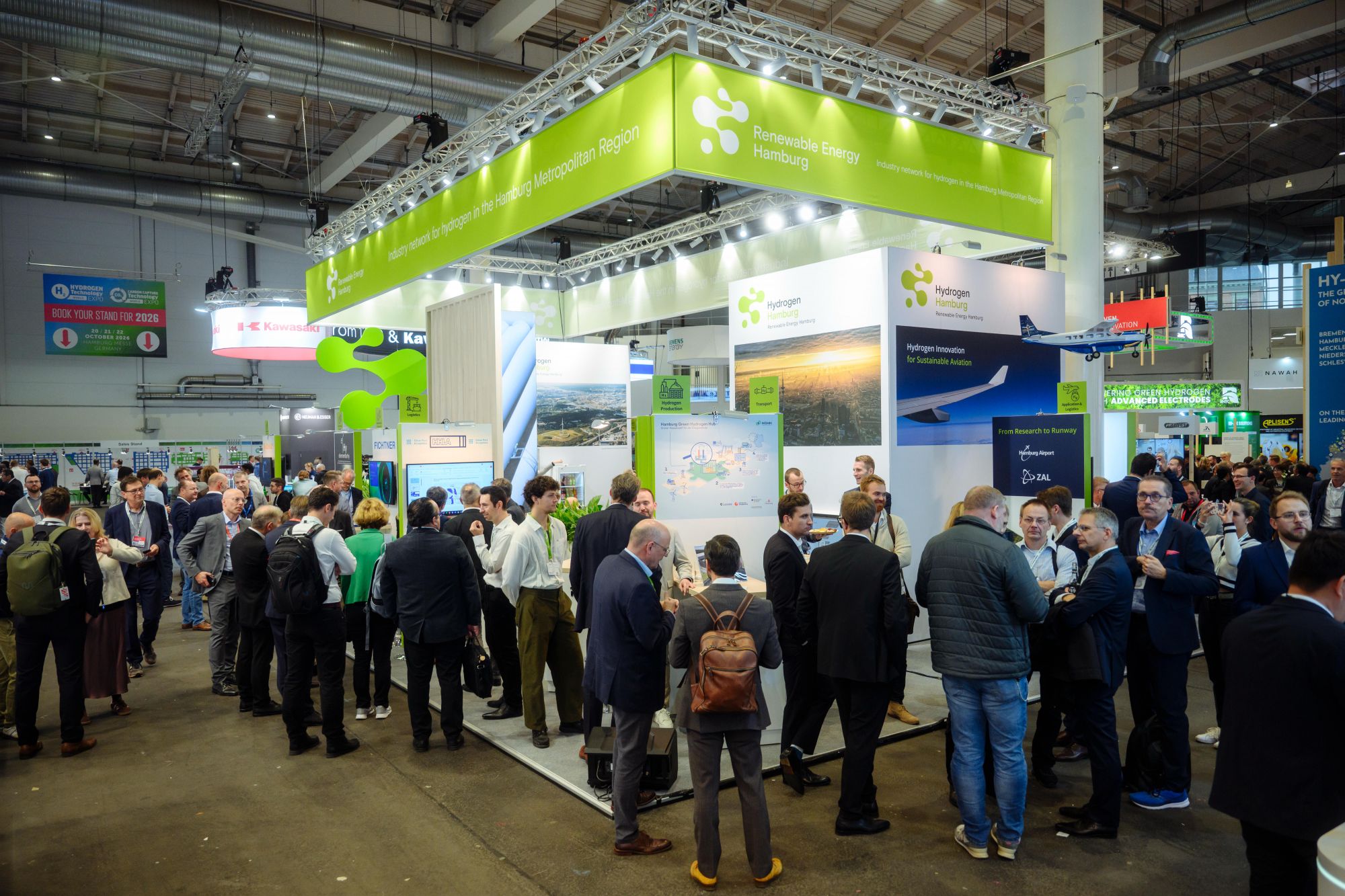 Die Hydrogen Technology Expo 2025 verzeichnete 1000 Aussteller und 20.000 Besucherinnen und Besucher in der Hamburg Messe. Der EEHH-Stand repräsentierte das Hamburger Wasserstoff-Ökosystem in bester Lage in Halle B6 mit 15 Unternehmen und Projekten.