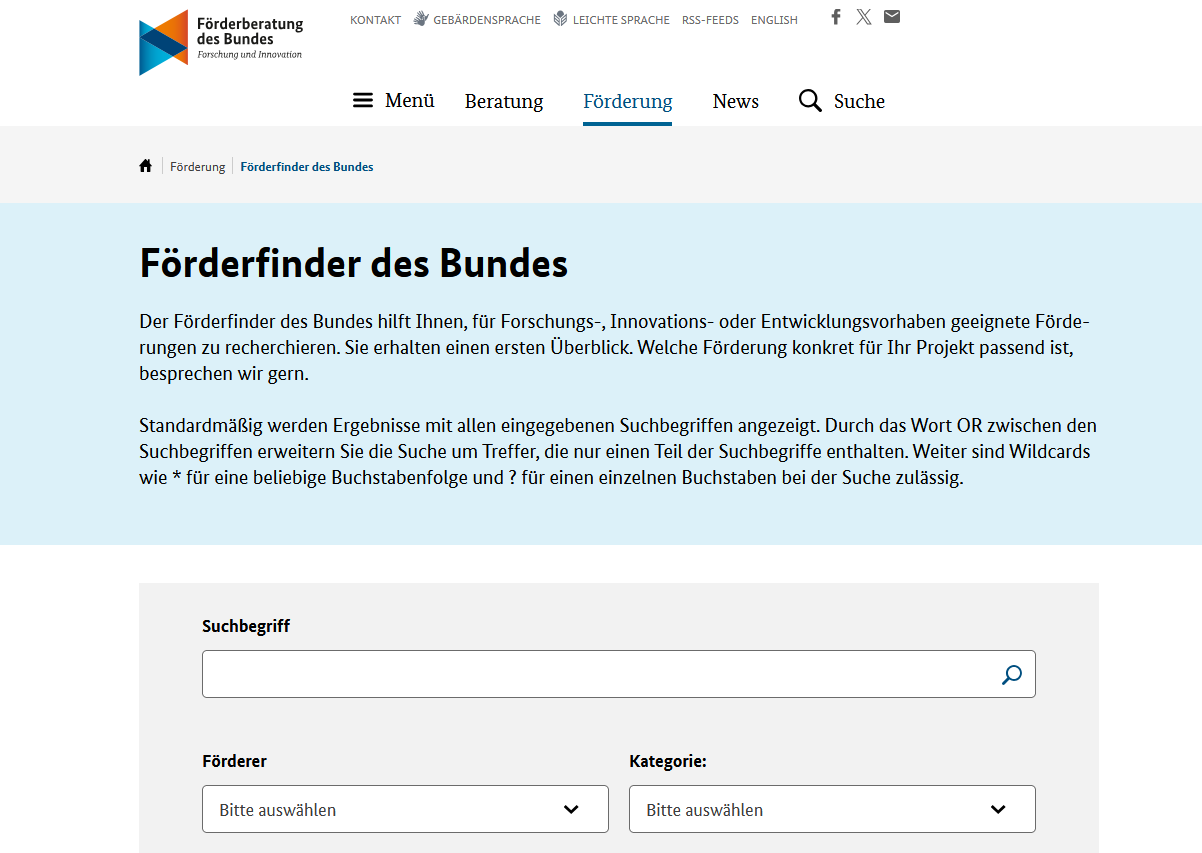 Verschiedene Förderfinder stellen umfangreiche Datenbanken zur Verfügung, in denen gezielt nach bestehenden Angeboten gesucht werden kann. Sie sind - neben der persönlichen Beratung - das wohl wichtigste Instrument im Förderbereich.