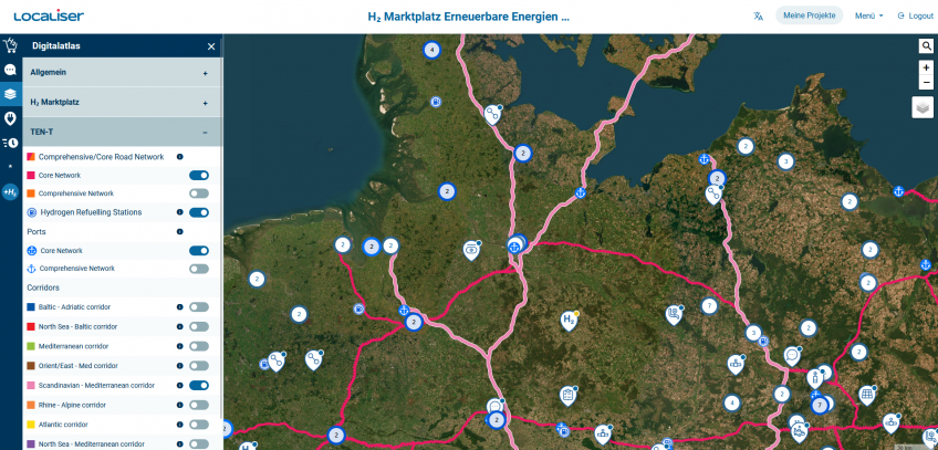 - Wasserstoffangebot und -nachfrage georeferenziert darstellen