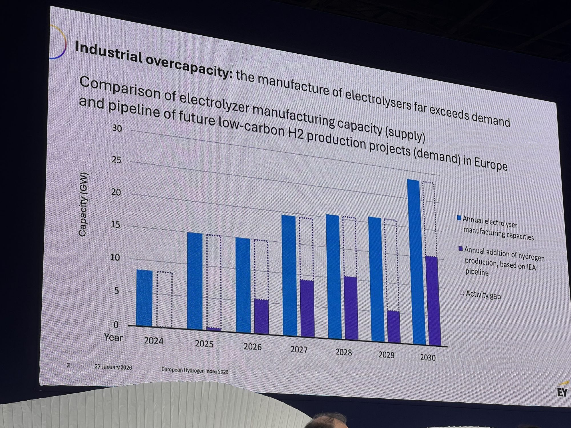 In den Vorträgen und Paneldiskussionen wurde eine mit Deutschland vergleichbare angespannte Marktlage deutlich, die vor allem durch komplizierte Regulatorik und damit mangelnde Planungssicherheit geprägt ist. Da bis auf Weiteres durch abgesagte oder verzögerte Projekte Skalierungseffekte ausbleiben, wird der Markthochlauf weiter verzögert.